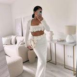 Ensemble bandage 2 pièces à fleurs. Tissu extensible avec fermetures